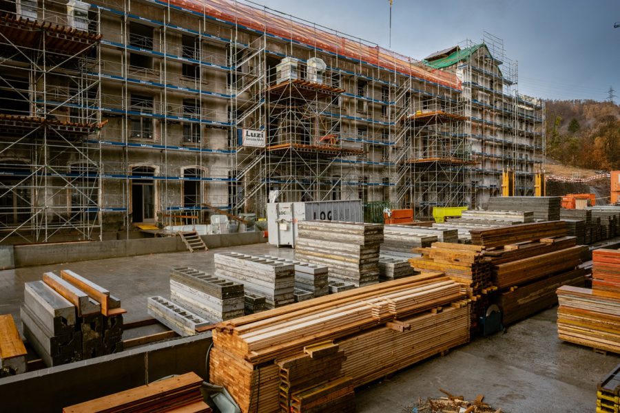 Die Bauarbeiten laufen auf Hochtouren. Zurzeit arbeiten 150 Bauleute parallel an drei Bauetappen. Der Rohbau der Weberei ist fast abgeschlossen, der Neubau der Öffnerei geht zügig voran, der Umbau der Spinnerei hat begonnen. Auch der Vermarktungsstart der Etappe 3 verlief erfolgreich. Es wurden bereits erste Wohnungen reserviert.